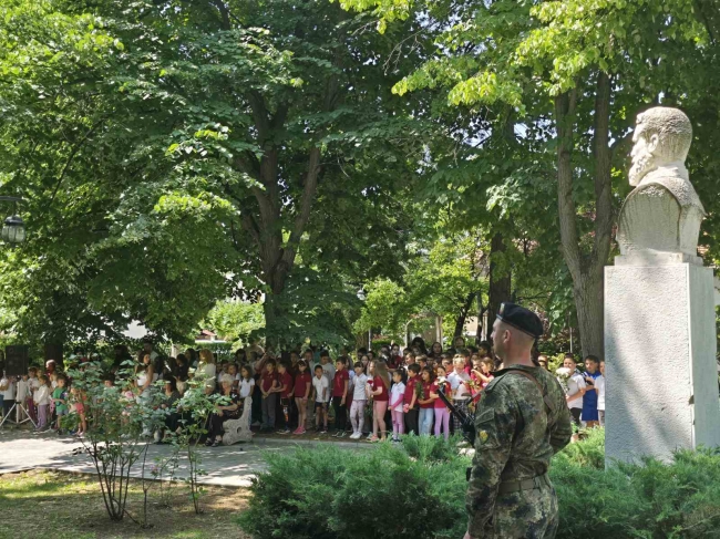 Припомнени бяха моменти от живота и делото на Христо Ботев. Стихотворението “Химн за Ботев” в изпълнение на Елизара Хасанова от ДГ “Елена Грънчарова” прозвуча малко преди воя на сирените, напомнящ за дълга ни към отдалите своя живот за свободата на Отечеството.