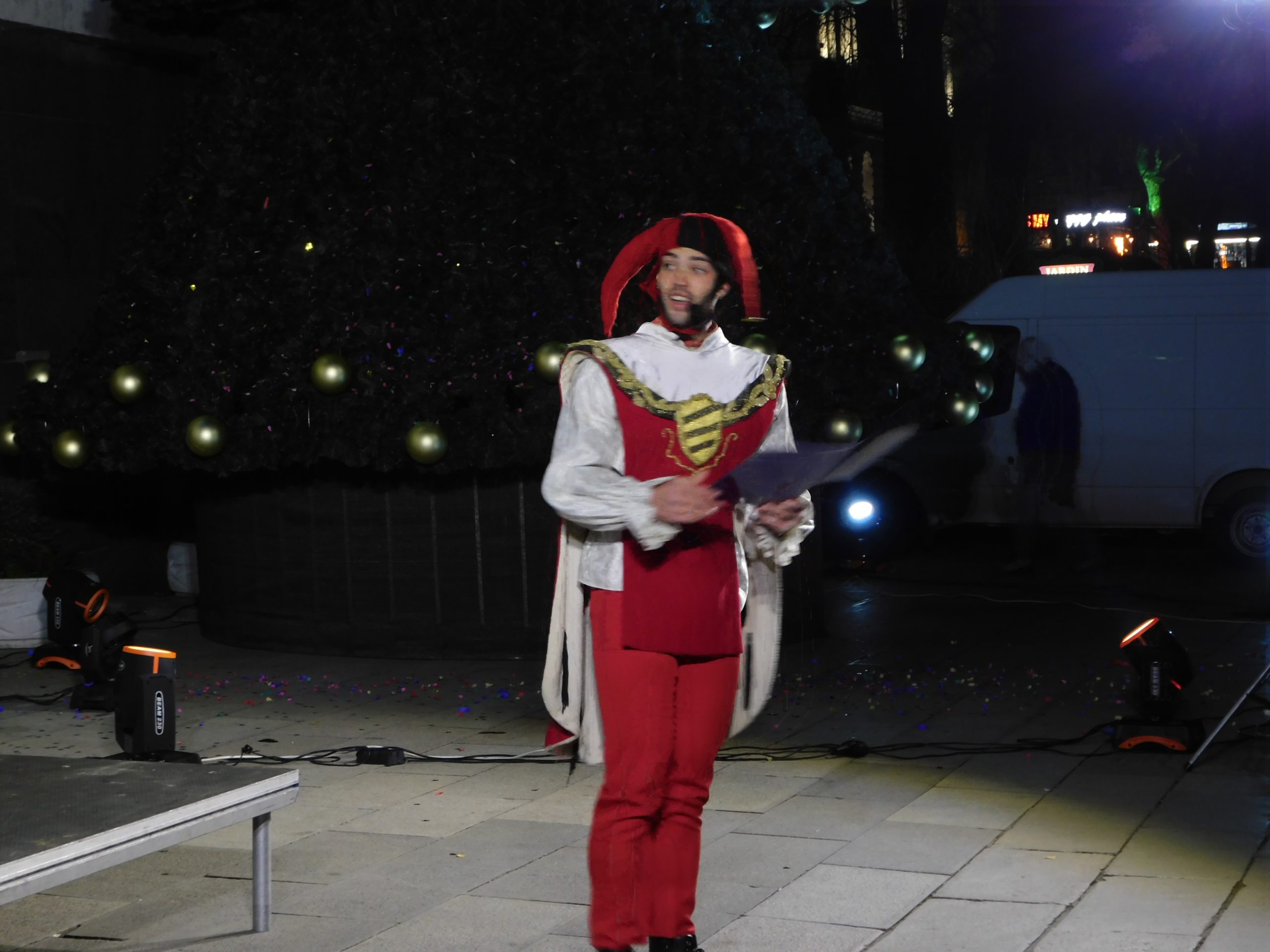Приветствие към всички поднесе зам.-кметът на старата столица Георги Недев. „Позволете ми да ви поздравя от името на кмета Даниел Панов и на цялото ръководство на Общината. Изключително се радвам да бъдем заедно пред нашето прекрасно коледно дърво. Декември е месец, който носи всички чувства на доброта, на коледен дух, домовете ни стават по-уютни, а ние, хората – по-добри. Нека си пожелаем три неща – здраве, вяра и мир за нашите семейства, за нашия град и за България“, заяви Георги Недев.