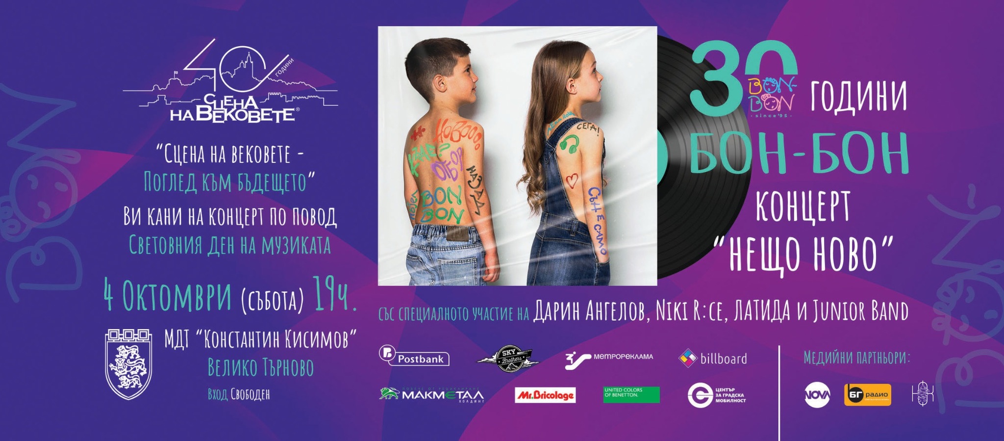 Медийни партньори на сценичното приключение 30 години „Бон-Бон“ – „Нещо ново”, са NOVA Broadcasting Group и „БГ Радио“.