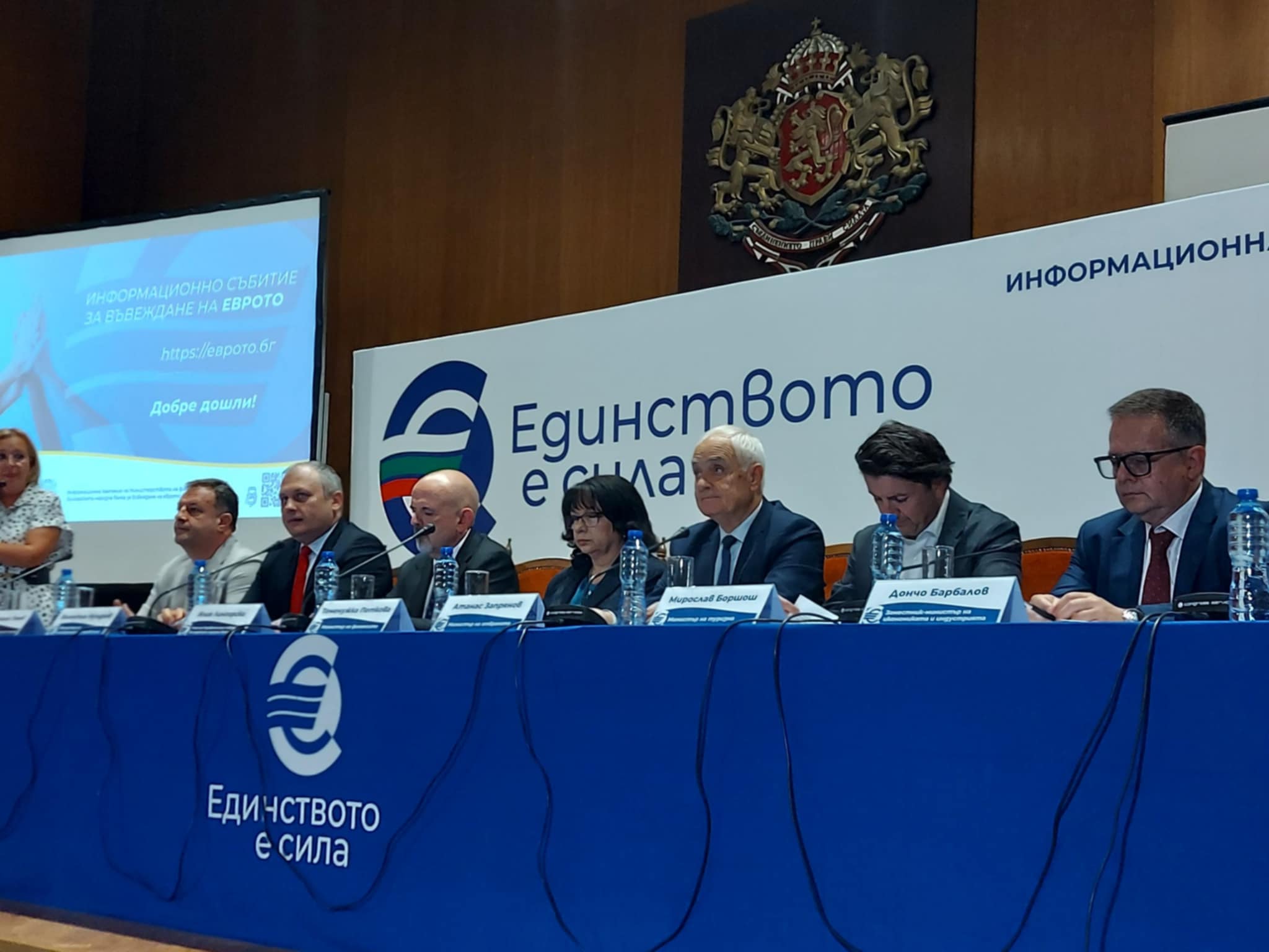 Няколко министри от кабинета, както и шефове на национални институции присъстваха на срещата, чията цел е да информира обществото за конкретните срокове, стъпки и практически аспекти, които съпътстват историческия преход към единната европейска валута.
