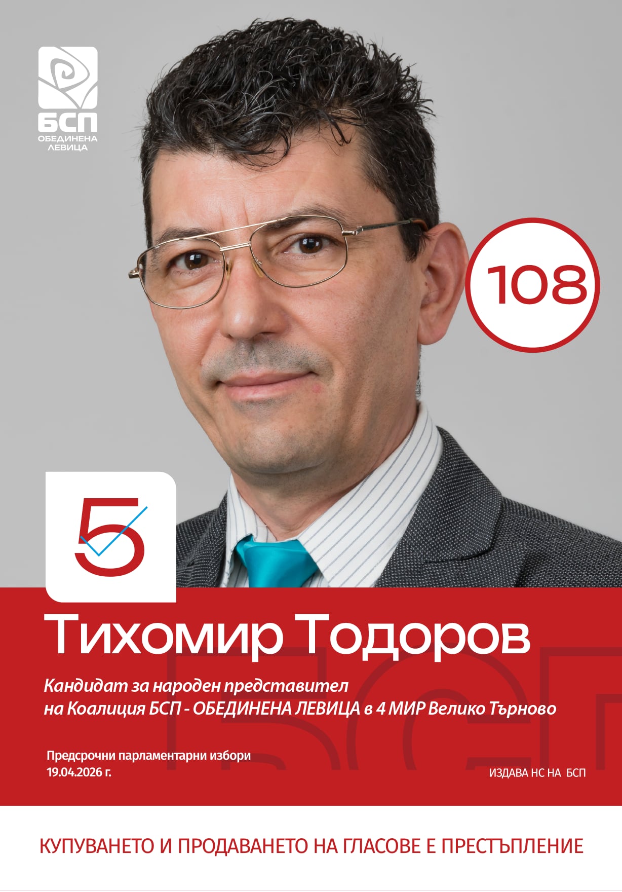 Тихомир Тодоров е с номер 5 в бюлетината и лична преференция 108!
