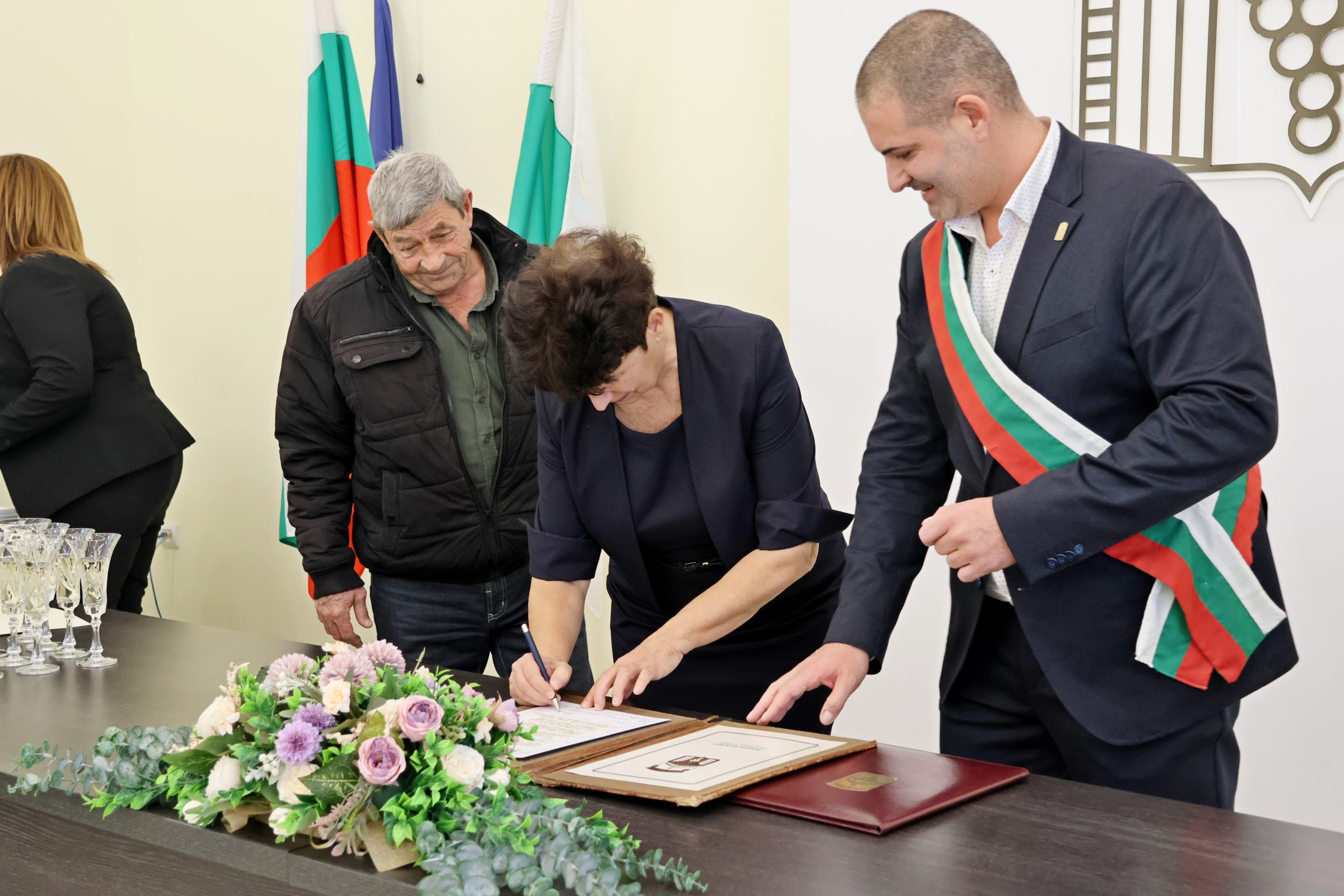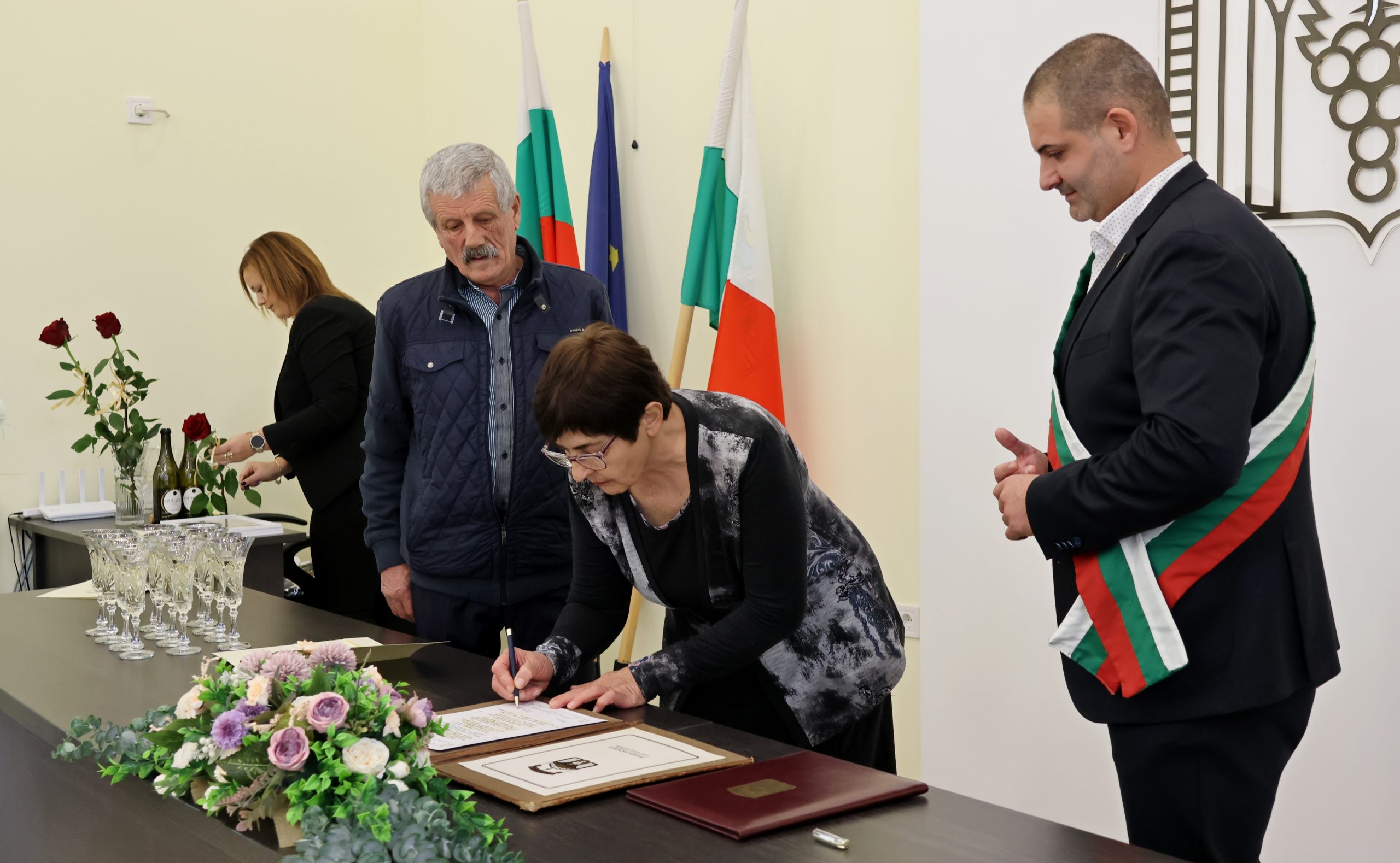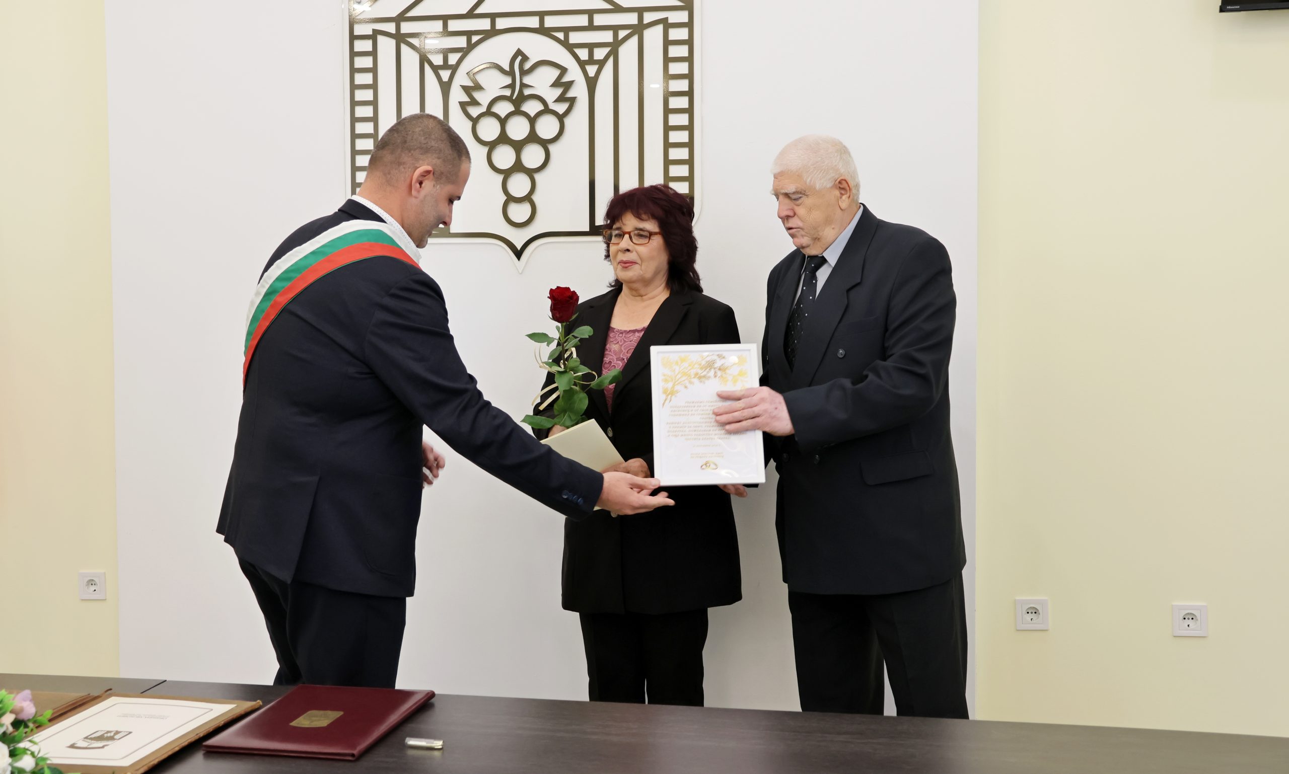 След подписване на клетвен лист, семействата бяха приветствани от Христов. „Чест е за мен, в Деня на християнското семейство да отправя своите най-сърдечни благопожелания по повод 50 години съвместен живот! Половин век заедно е впечатляващо постижение – доказателство за силна обич, уважение, доверие, любов и взаимна подкрепа. Вашата юбилейна годишнина е празник не само за вас самите, но и за цялата ни общност. Защото чрез личния си пример показвате, че най-ценните човешки връзки се съхраняват с любов и постоянство. Благодаря ви за примера, който давате на всички нас! Пожелавам ви много здраве, спокойствие и още дълги години семейна хармония“, пожела кметът.