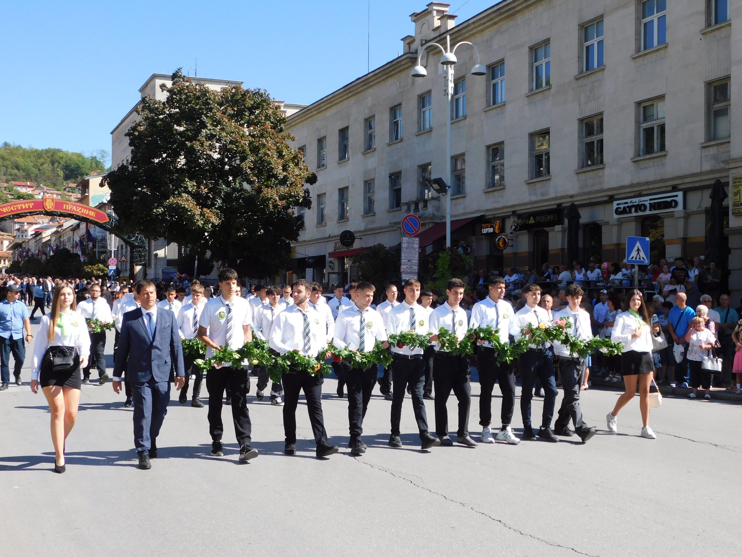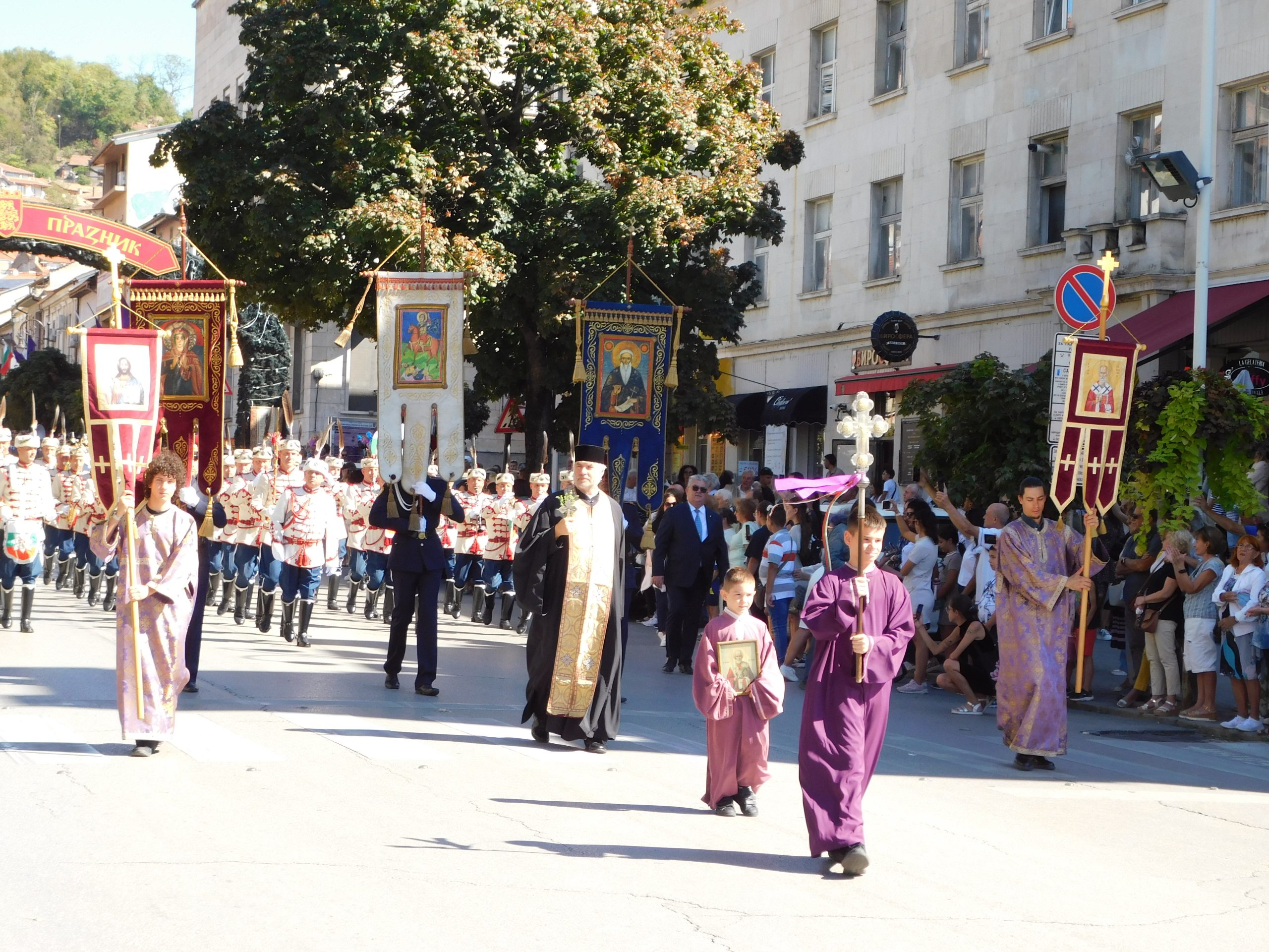 Предвождани от деца и младежи с хоругви, официалните лица оглавиха шествието, което се отправи от площад „Цар Асен“ към центъра на града. В него взеха участие и оркестрите, които участват в тазгодишното издание на традиционния Фестивал на военните духови оркестри. На Паметника „Майка България“ бяха поднесени цветя и гирлянди от официалните лица и ученици от великотърновските училища.