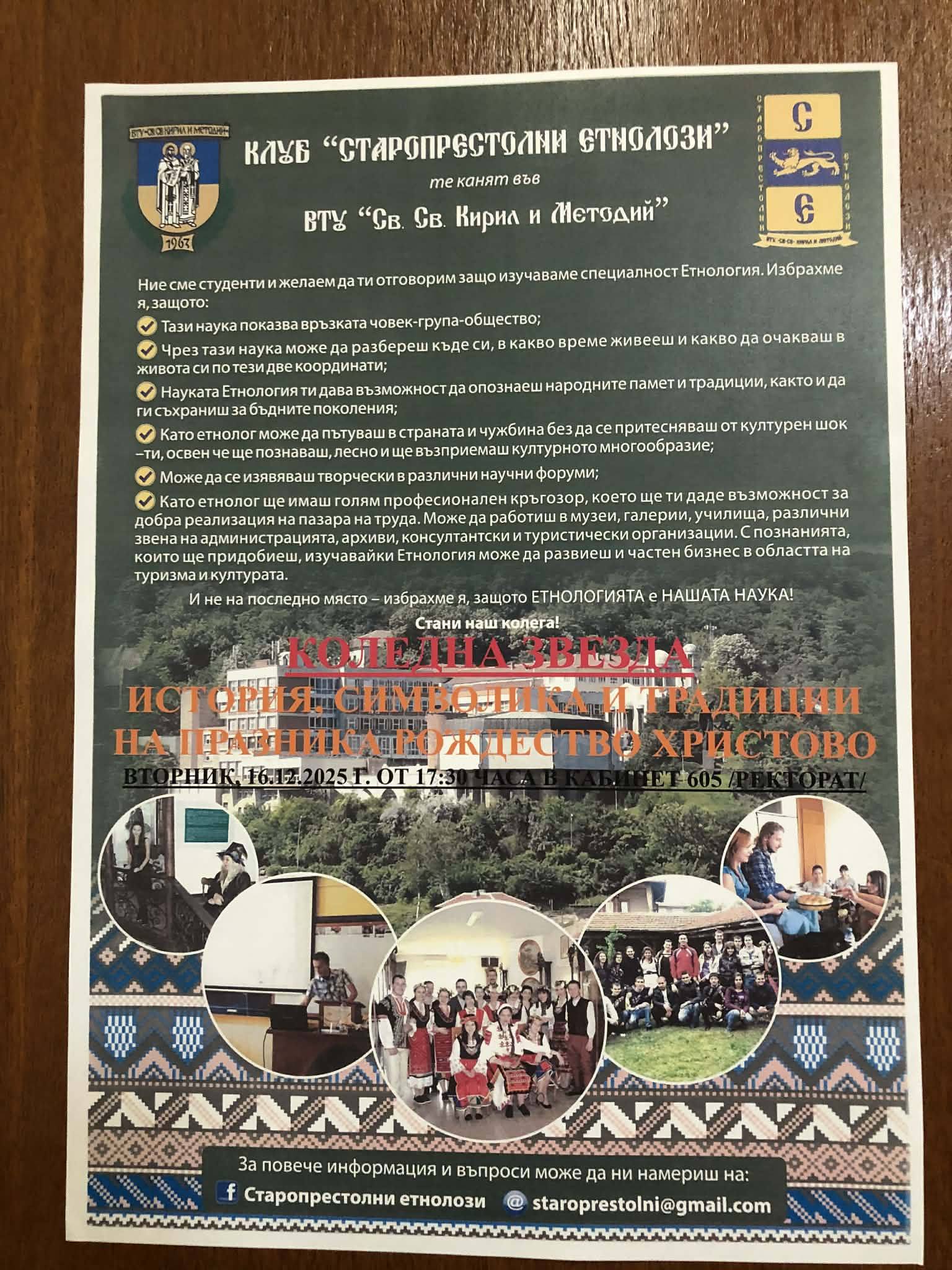 „Коледна звезда“ представи във ВТУ клубът „Старопрестолни етнолози“