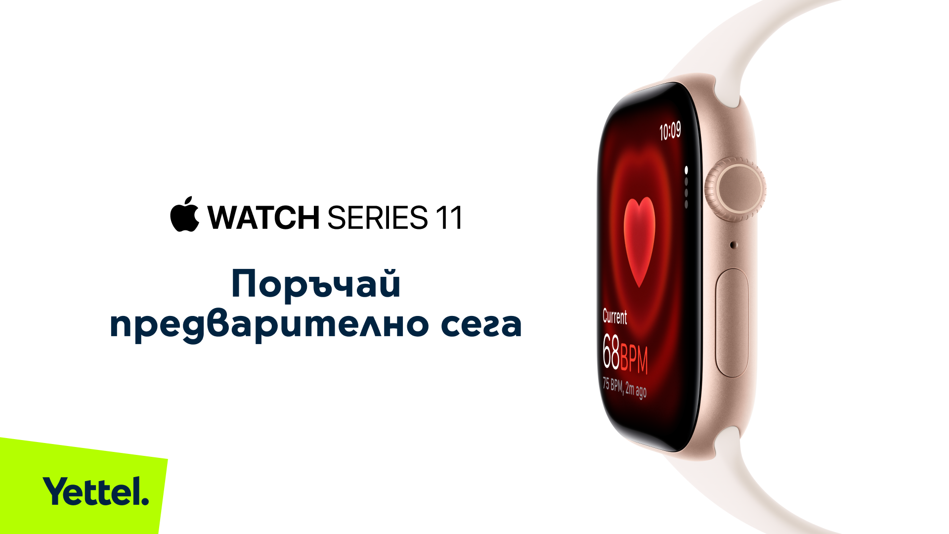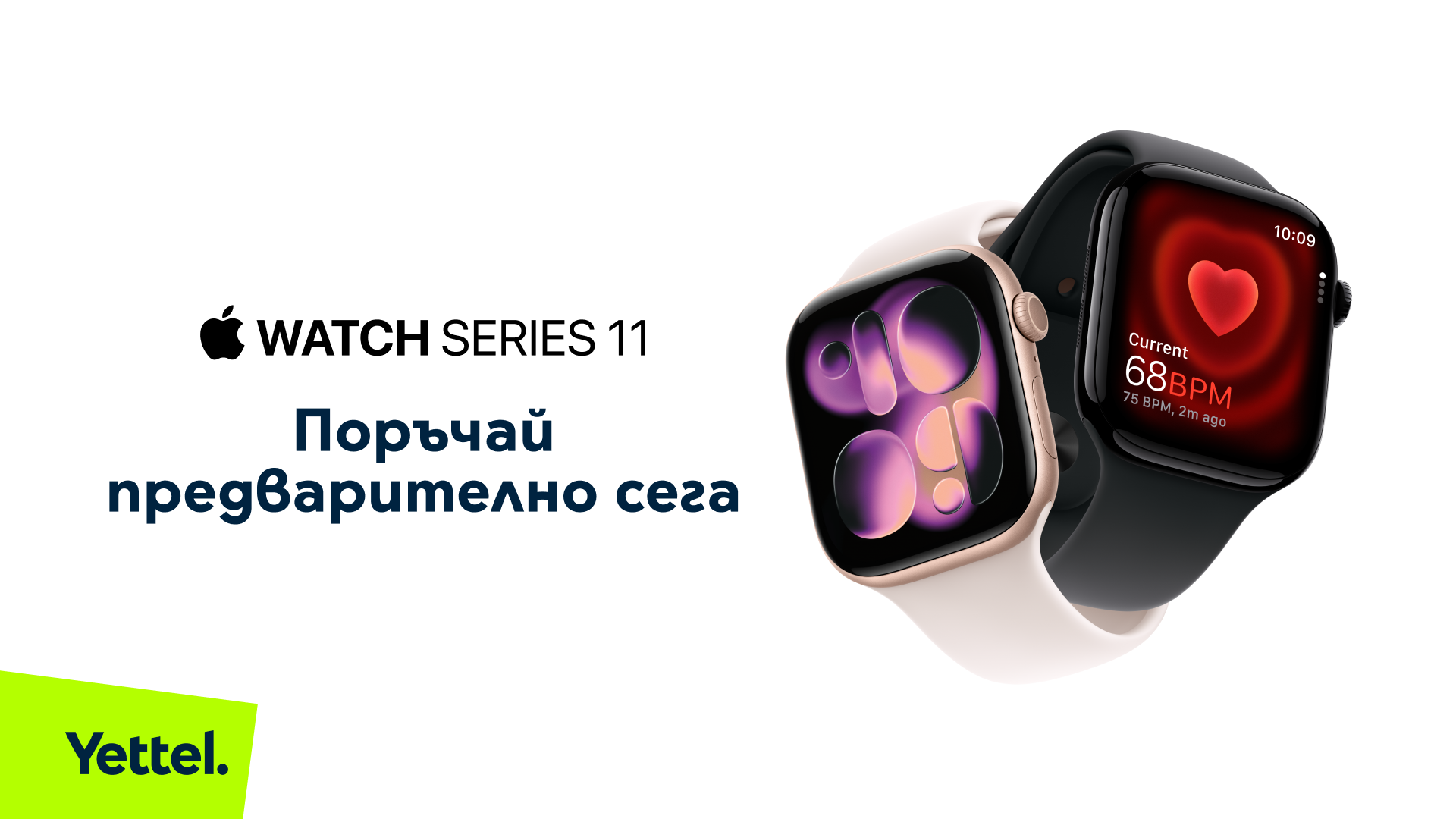 Apple Watch Series 11 идва с функция за оценка на съня (sleep score), до 24 часа живот на батерията и дисплей, който е два пъти по-устойчив на надраскване. Моделът се предлага с алуминиев корпус в новия цвят Space Gray, както и в Jet Black, Rose Gold и Silver, а също и с полиран титаниев корпус в цветове Natural, Gold и Slate. Цената му в Yettel започва от 869,99 лв./ 444,82 евро в брой или 38,99 лв./ 19.94 евро на месец за 2 години.