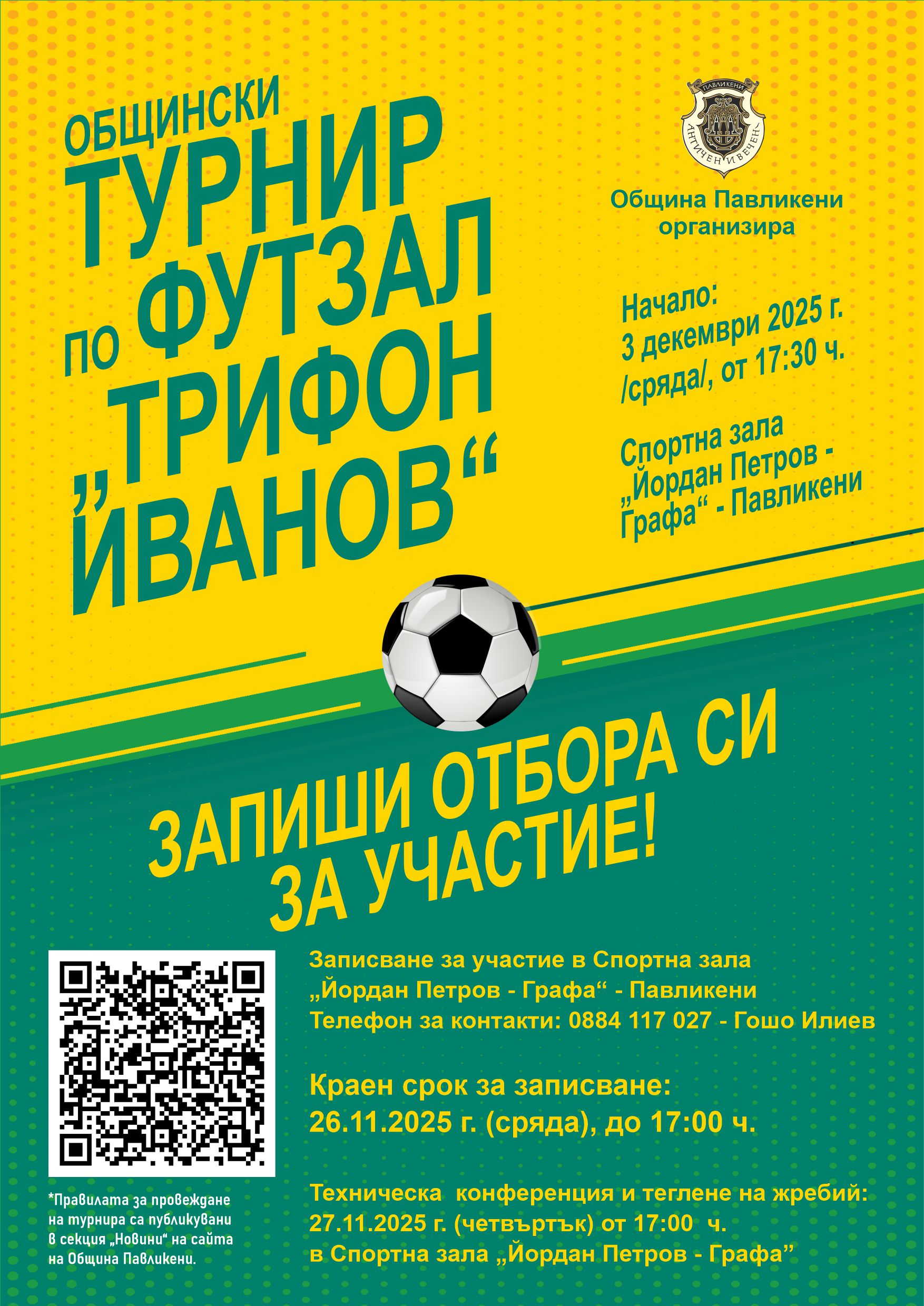 Започна записването на отборите за участие в Общинския турнир по футзал „Трифон Иванов” 2025.