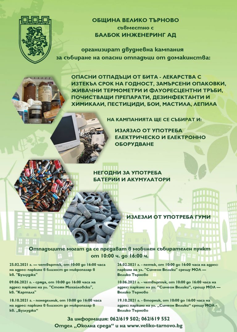 Велико Търново с нова кампания за събиране на опасни битови отпадъци