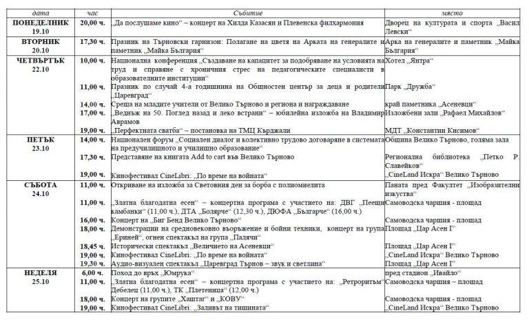 Програма за честване на Димитровден във В. Търново