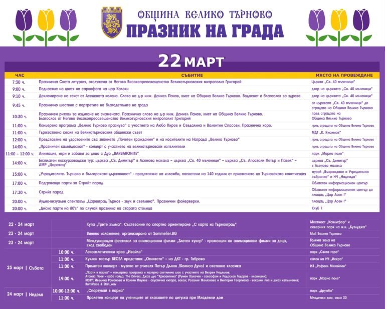 По случай 22 март – Празника на Велико Търново, Общината прави жест към всички боляри и гости на старата столица. …