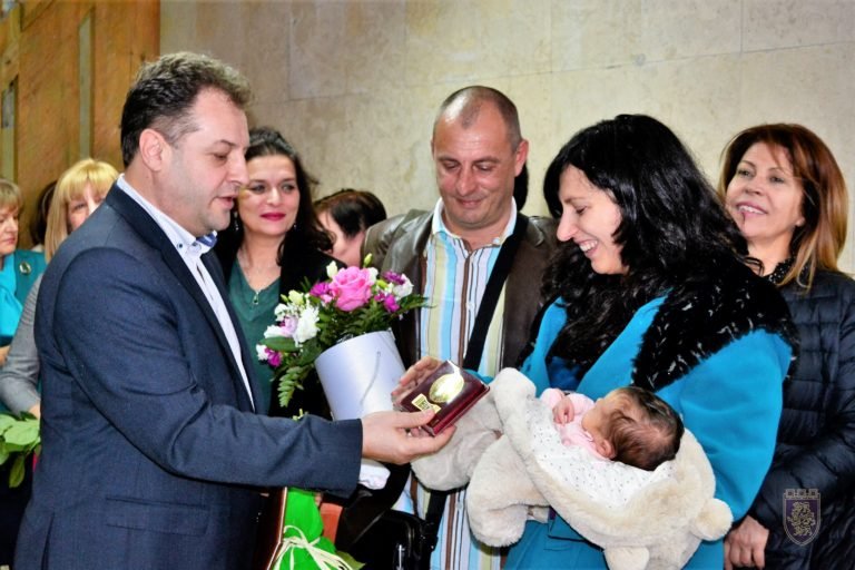 Орисаха първото бебе на В. Търново за годината, кметът Даниел Панов подари реплика на царска монета